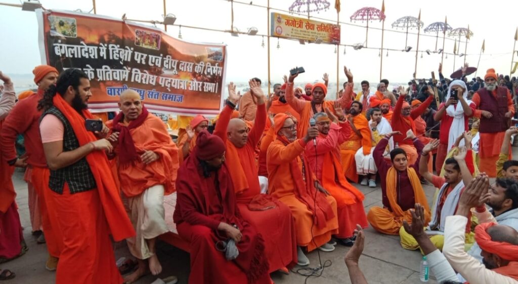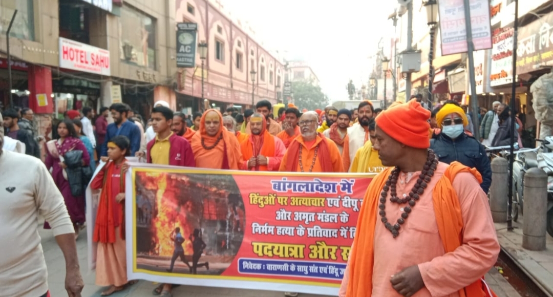 आज काशी के सभी मठ एवं अखाड़ा के साधु – संत समाज ने मिलकर बांग्लादेश मे हिंदुओं पर हो रहे अत्याचार के विरोध में जन आक्रोश रैली निकाला। जो कि रथ यात्रा से दशाश्वमेध घाट तक गया। इस जन आक्रोश रैली में काशी के प्रमुख संत के रूप में महामंडलेश्वर श्री 1008 प्रणव चैतन्य पुरी जी महाराज, स्वामी जितेंद्रानंद जी महाराज ( महामंत्री अखिल भारतीय संत समाज ), पातालपुरी मठ के महंत जगतगुरु बालक दास जी महाराज, ब्रह्मचारी दिव्य चैतन्य जी महाराज ( जाटा बाबा ), स्वामी ब्रह्म्यानंद जी महाराज ( भारत सेवाश्रम संघ ), स्वामी राघवानंद जी महाराज ( कैलाश मठ ), स्वामी अनघानंद पुरी जी महाराज ( भोलागिरी आश्रम ) आदि लोग उपस्थित रहे। सभी संत समाज, महामंडलेश्वर एवं जगत गुरुओं ने बांग्लादेश में हो रहे हिंदुओं पर अत्याचार के विरोध में यह प्रदर्शन किया। सभी साधु संतों का कहना था कि, बांग्लादेश में हिंदुओं की रक्षा के लिए भारत सरकार आगे आए। एवं विशेष कार्यवाही करें, वहाँ के हिंदुओं की सुरक्षा सुनिश्चित करें। सभी हिंदू एक रहेंगे, तो सुरक्षित रहेंगे। हिंदुओं का सदैव नरसंहार होते आया है। जिसका पीढ़ी दर पीढ़ी हम सब ने दु:ख भोगा है। लेकिन यही समय है, सही समय है। इस अत्याचार का अब अंत होना चाहिए। हम सभी हिंदू भाई-भाई हैं। हम सभी हिंदू मिलकर एक शक्तिशाली एवं सुरक्षित हिंदू राष्ट्र का निर्माण करें। सनातन हिंदुओं की रक्षा ही राष्ट्र की रक्षा है। विश्व शांति के लिए एकमात्र मार्ग है।