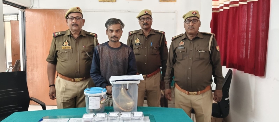 पुलिस अधीक्षक चन्दौली आदित्य लांग्हे द्वारा अपराध एवं आपराधियों के विरुद्ध अंकुश लगाने हेतु वांछित अभियुक्तों के गिरफ्तारी हेतु दिये गये आदेश/निर्देश के क्रम में अपर पुलिस अधीक्षक अनंत चन्द्रशेखर (आई.पी.एस.) व क्षेत्राधिकारी सदर, देवेन्द्र कुमार के कुशल पर्यवेक्षण में थानाध्यक्ष राजीव मल्ल थाना कन्दवा के नेतृत्व में थाना कन्दवा पुलिस द्वारा मुखबिर द्वारा प्राप्त सूचना के आधार पर घोसवां नहर तिराहा इमलियां मोड़ के पास संदिग्ध वाहन/व्यक्ति की चेकिंग के दौरान मु0अ0सं0 94/25 धारा 305/317(2) बी.एन.एस, मु0अ0सं0 95/25 धारा 305/317(2) बी.एन.एस., मु0अ0सं0 96/25 धारा 305/317(2) बी.एन.एस,, मु0अ0सं0 97/25 धारा 305/317(2) बी.एन.एस 5.मु0अ0सं0 14/26 धारा 305/317(4) बी.एन.एस व मु0अ0सं0 15/26 धारा 305/317(2)/317(4) थाना कन्दवा जनपद चन्दौली से सम्बंधित अभियोग में वांछित अभियुक्त मोनू सिंह उर्फ बाउल पुत्र सुरेन्द्र सिंह निवासी ग्राम घोसवा थाना कन्दवा जनपद चन्दौली उम्र करीब 32 वर्ष को किया गया गिरफ्तार जिसके कब्जें से चोरी का सामान क्रमश: मूर्ति की आंख 02 पीली धातु की, 06 आंख सफेद धातु की, 01 नाग पीतल का, 07 कटोरी भोग लगाने का, 01 दीपक व 01 पंचमुखी आरती करने का, दीपक 01 लोटिया, 02 घण्टी पीतल की, 02 जोड़ी लक्ष्मी गणेश की मूर्ति व चोरी का 3500 रूपये बरामद कर आवश्यक विधिक कार्यवाही की जा रही है।