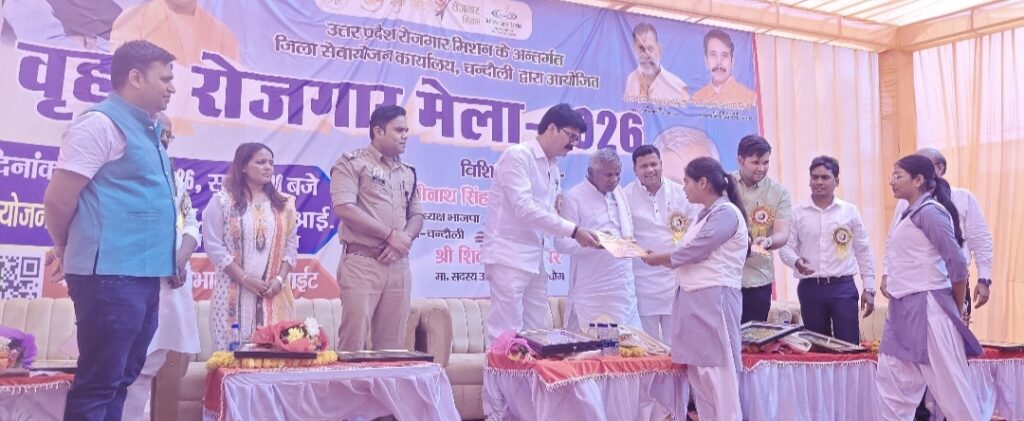 Chandauli news:वृहद रोजगार मेला में 648 अभ्यर्थियों को मिला रोजगार युवाओं को अपना व्यवसाय शुरू करने के लिए 5 लाख रुपये तक का ब्याज-मुक्त और बिना गारंटी का ऋण किया गया प्रदान