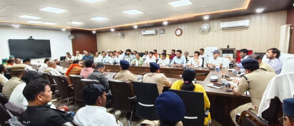 जिलाधिकारी द्वारा सभी उपस्थित सदस्यों का स्वागत किया साथ ही हर वर्ष की तरह आपसी भाईचारा के साथ नवरात्रि, आगामी रामनवमी एवं ईद-उल-फितर पर्वों मनाने की अपील की। बैठक में जनपद के विभिन्न धर्मों के गणमान्य नागरिकों, धर्मगुरुओं, व्यापारी संगठनों के प्रतिनिधियों एवं संबंधित विभागीय अधिकारियों ने प्रतिभाग किया। जिलाधिकारी द्वारा सभी से आपसी सौहार्द एवं भाईचारा बनाए रखते हुए पर्वों को शांति एवं सद्भाव के साथ मनाने की अपील की गयी। उन्होंने कहा कि सभी त्यौहार हमारी साझा सांस्कृतिक विरासत के प्रतीक हैं, जिन्हें मिल-जुलकर मनाना हम सभी की जिम्मेदारी है। त्यौहार पर किसी प्रकार की नई परंपरा न की जाए शुरू। बैठक में साफ-सफाई, पेयजल, विद्युत आपूर्ति, यातायात व्यवस्था एवं अन्य आवश्यक व्यवस्थाओं को दुरुस्त रखने के निर्देश संबंधित अधिकारियों को दिए गए।